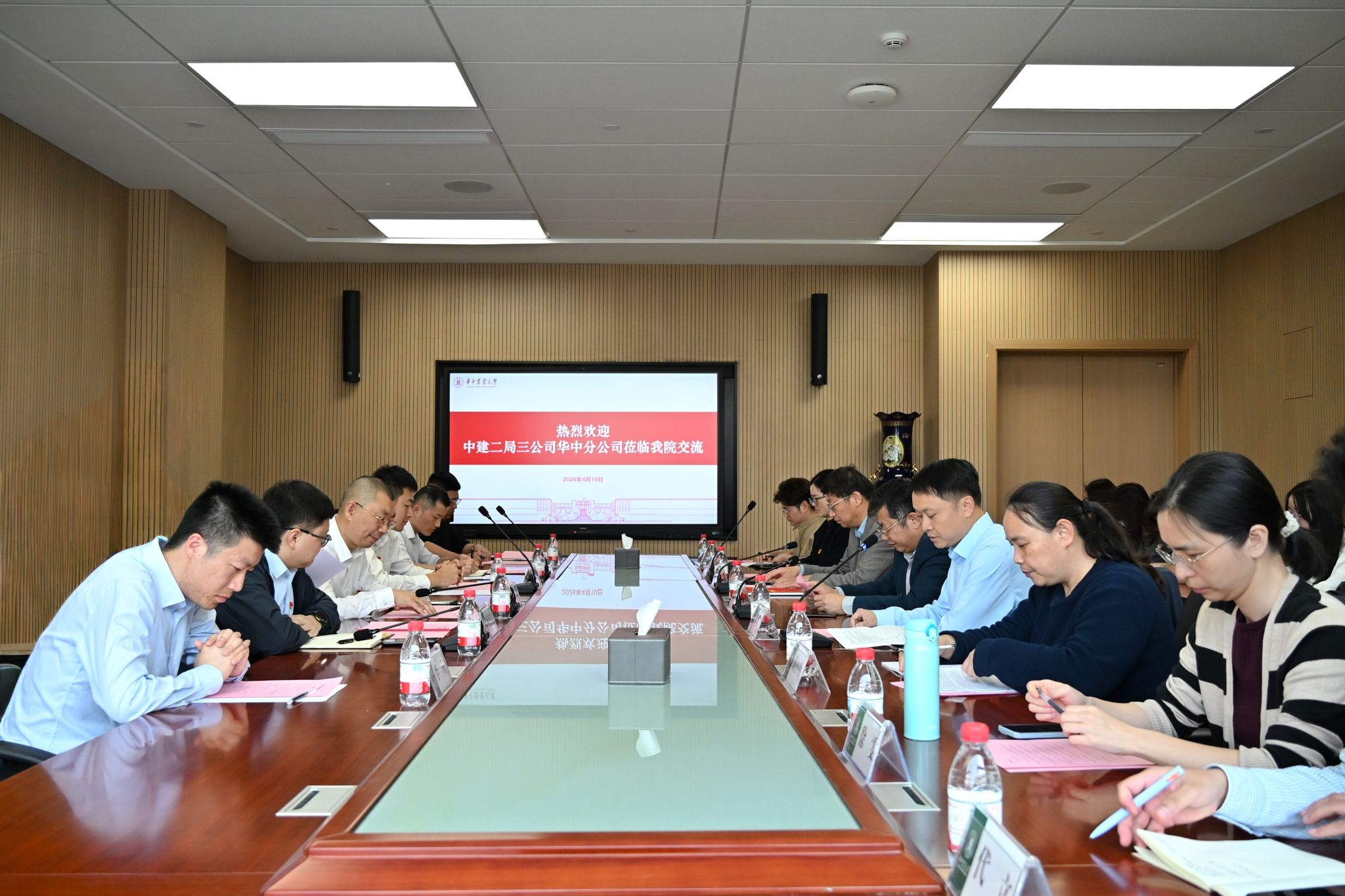 4月10日下午,公共管理学院与中建二局三公司华中分公司在新人文楼 369 会议室联合开展 “树立和践行正确政绩观 校企共促高质量就业”主题联学联建活动。中建二局三公司华中分公司党委副书记、纪委书记、工会主席陈路阳,纪委副书记李骏峰,人力资源部经理李若晨等企业代表;公共管理学院党委书记周向阳,党委副书记罗晓峰,副院长汪文雄等学院领导、师生党员代表及2026届本科毕业生代表参加活动。活动由学院党委副书记罗晓峰主持。
