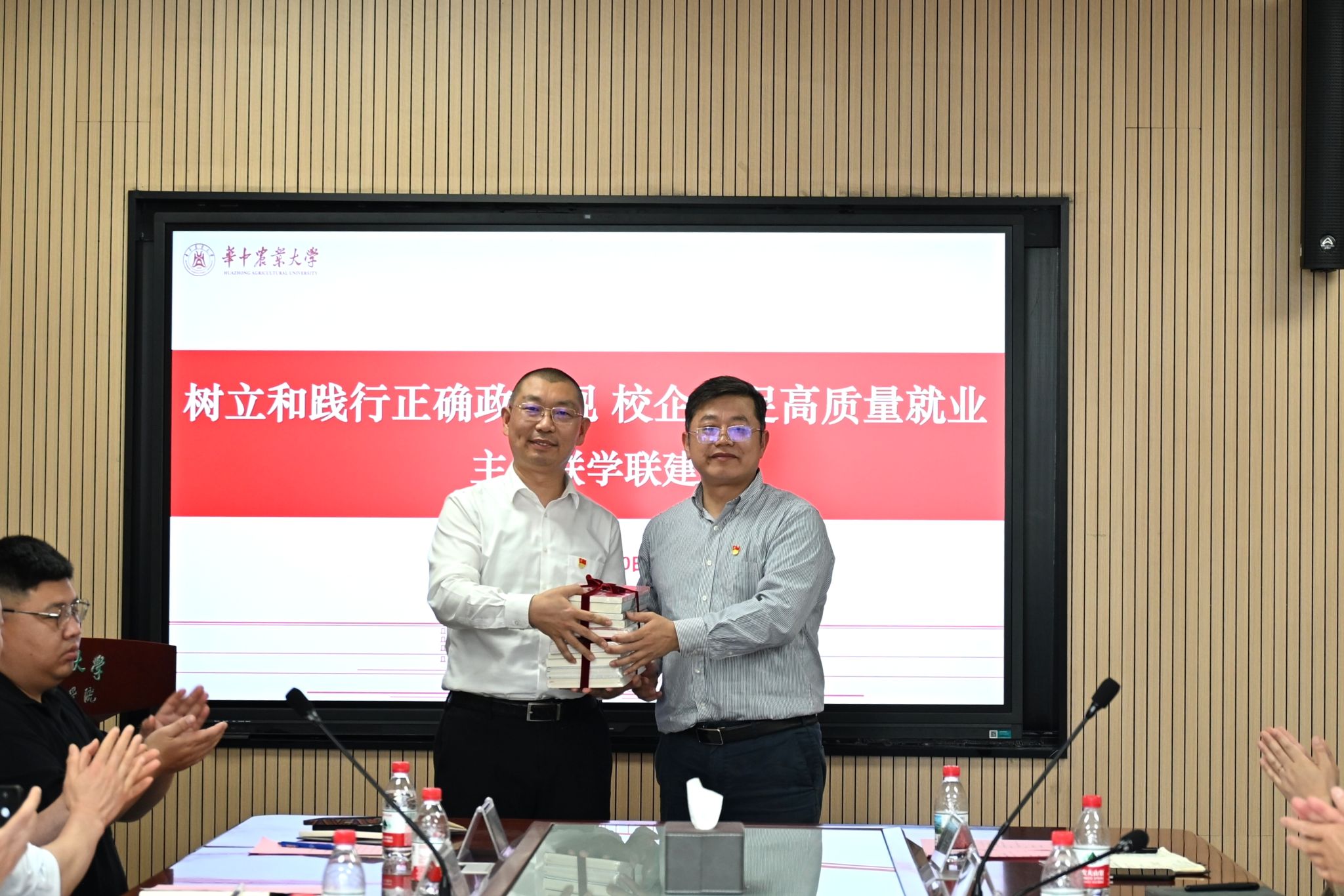 公共管理学院党委书记周向阳强调,高校要坚守立德树人根本任务,以正确政绩观引领办学育人,把促进毕业生高质量就业作为育人工作的重要环节,引导学生树立正确就业观、职业观,摒弃 “躺平”“慢就业” 等观念,主动到基层、到一线、到祖国最需要的地方建功立业。他希望以此次联学联建为契机,进一步深化校企协同育人,推动党建与人才培养、就业服务、产业发展深度融合。活动最后,双方举行赠书仪式,并合影留念。