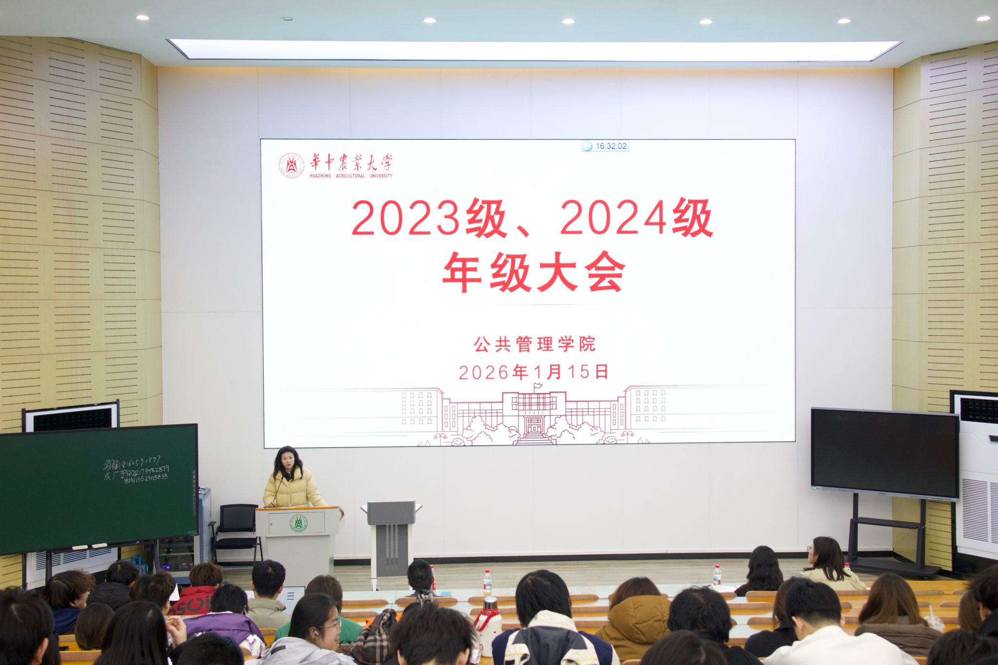 2026年1月15日下午,公共管理学院在三教S1报告厅举办了2023级和2024级年级大会。本次大会聚焦学生成长发展的关键领域,整合生涯规划、法治安全、消防安全、文明养成与考风考纪等多维度主题教育,旨在引导学生明确发展方向、增强安全意识、规范行为习惯,为未来的学习与生活奠定坚实基础。学院党委副书记罗晓峰出席大会并讲话,各年级辅导员、2023级和2024级全体本科生参加会议。