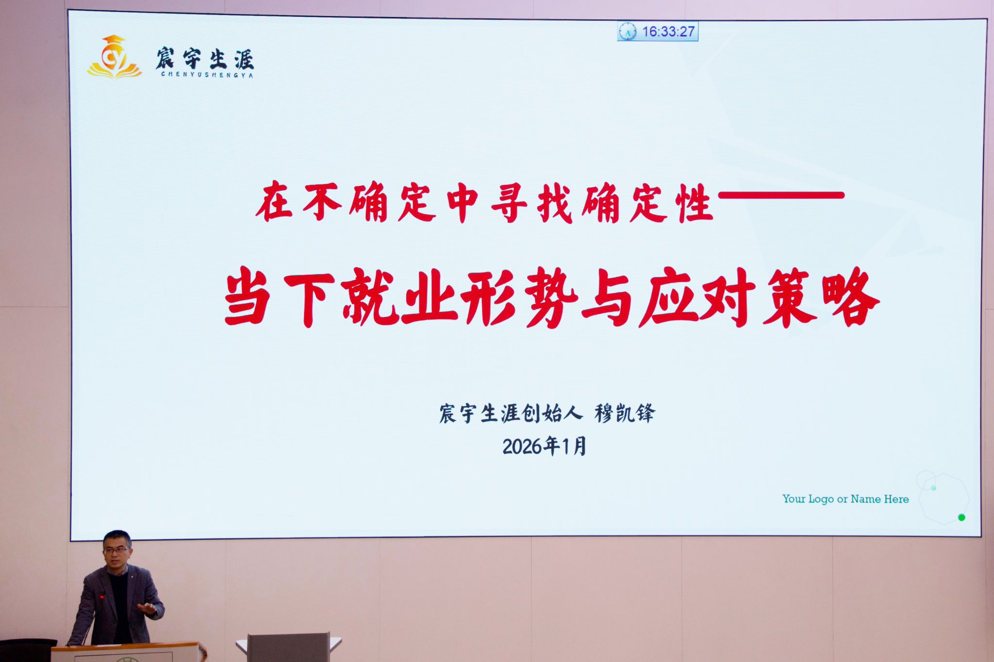 大会以生涯规划教育拉开序幕。学院特邀宸宇生涯创始人穆凯锋先生作题为“在不确定中寻找确定性”的专题分享。穆老师结合当前就业形势与行业发展动态,通过生动的案例和互动,深入浅出地分析了职业生涯“早规划、早准备、早应对”的重要性,并分享了“幸福职业生涯”中自我探索、职业目标设定及能力提升的具体路径,鼓励同学们立足实际,开阔视野,主动规划精彩人生。